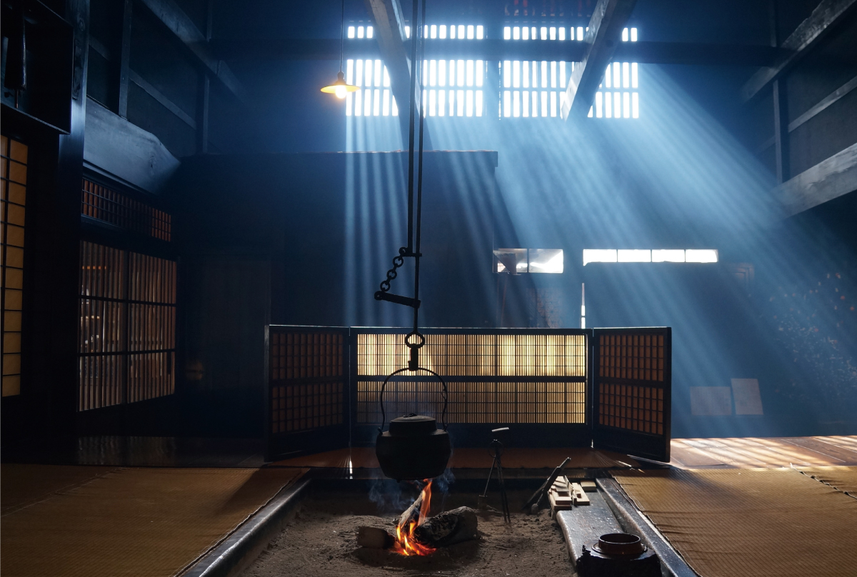 年輪を重ね、逞しく育った木の命をありがたく頂戴し、太い柱や丈夫な梁を、匠の技で組み上げられた古民家。