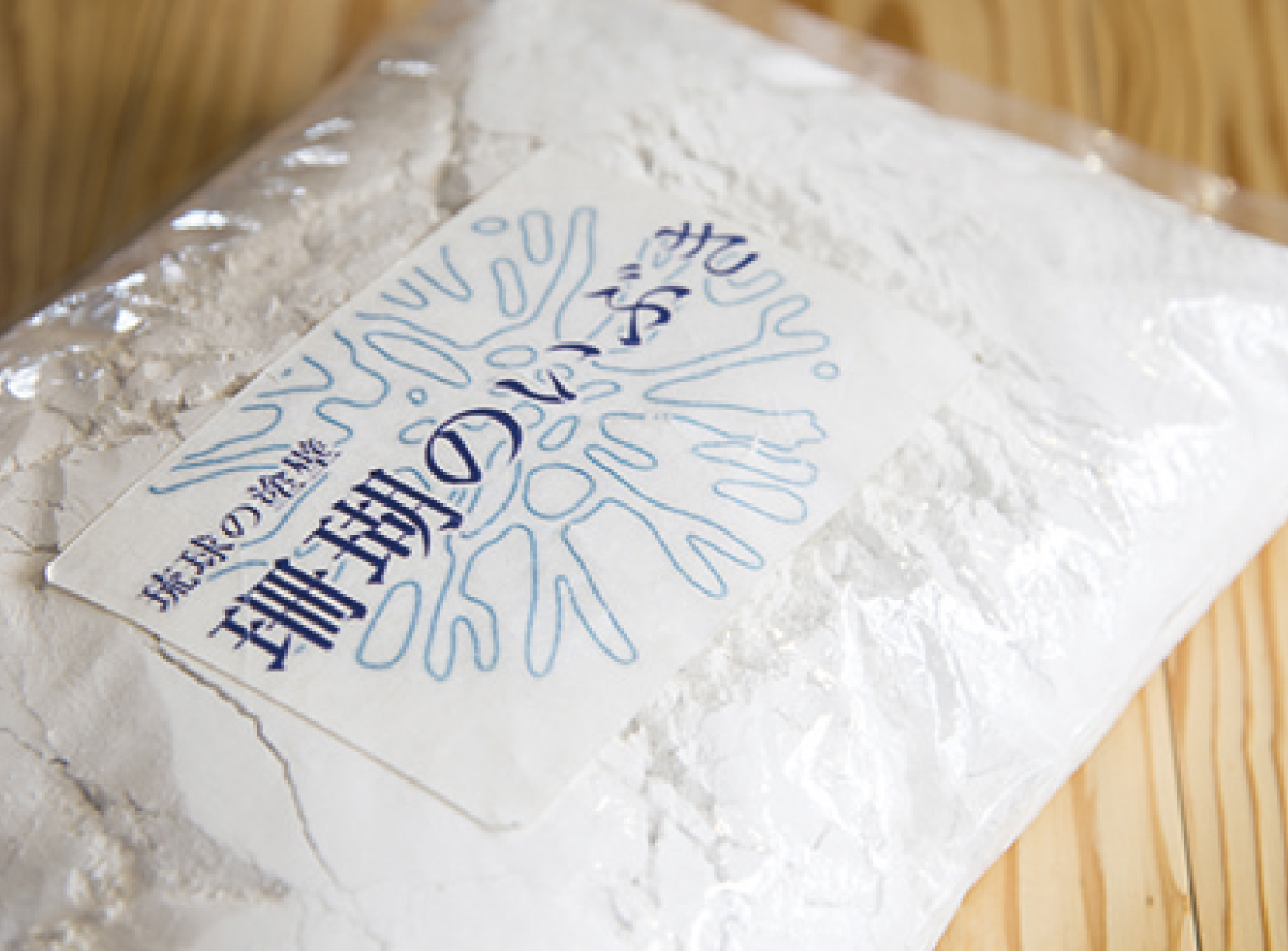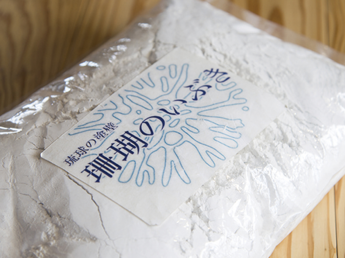 当社が販売する商品の一つ、沖縄に由来する様々な自然素材から生まれた人にやさしい塗り壁材「珊瑚のいぶき」