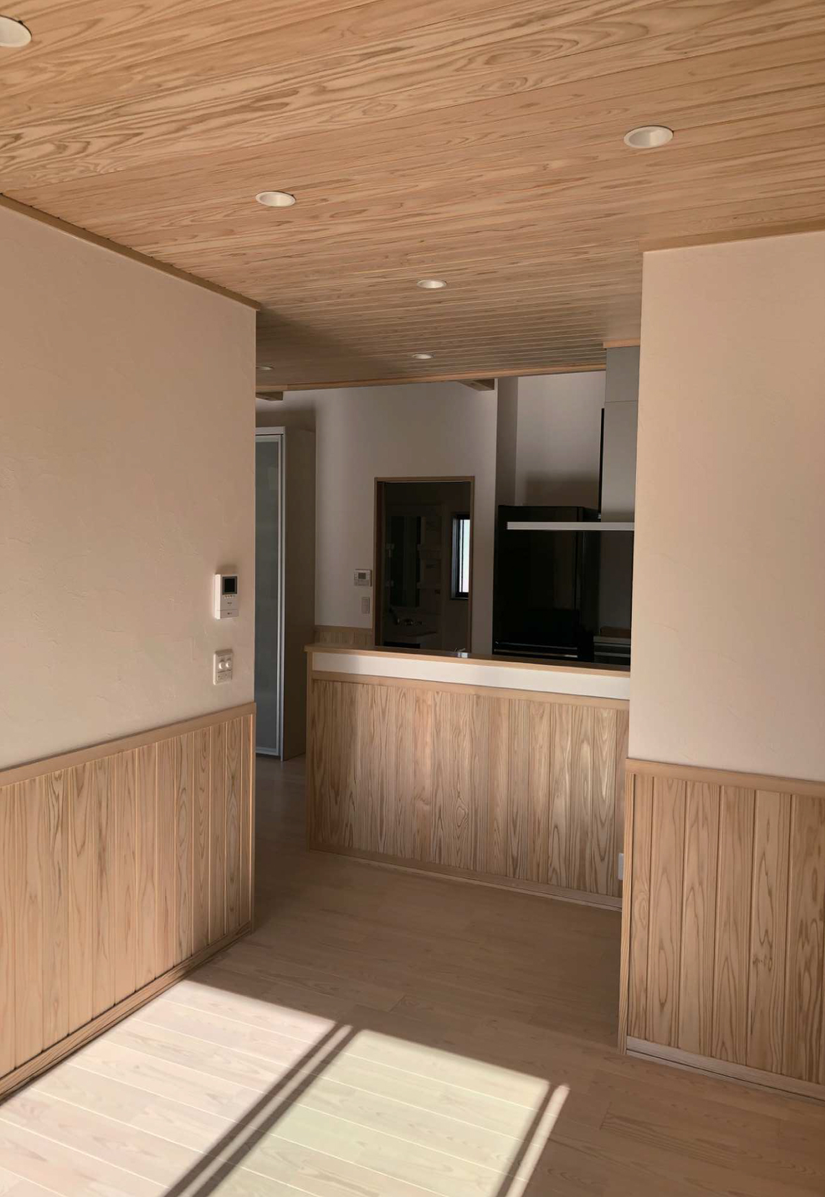 杉の天井板に、松の床、壁には漆喰壁と、どれも選び放題のビュッフェ式住宅。