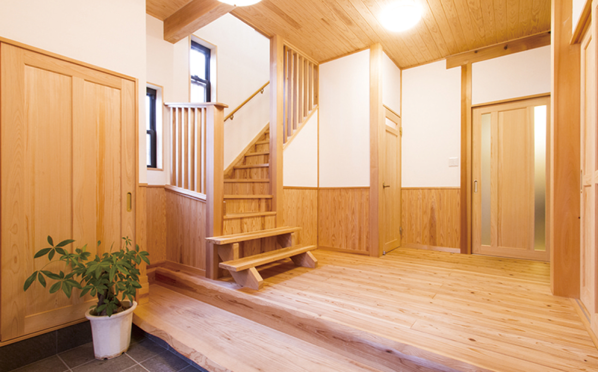 「お客様をお迎えする空間にはこだわりたい」そんなオーナーのご要望をカタチにした、広々とした玄関ホール。